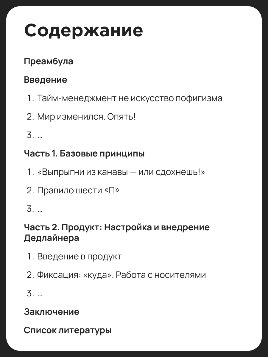 Автор столкнулся с этим, работая над масштабными проектами уровня чемпионата мира по футболу – там пренебречь деталями не получится, каждая задача важна, даже самая мелкая. Ни одна из известных систем тайм-менеджмента не справилась. И тогда на свет появилась система Дедлайнер.