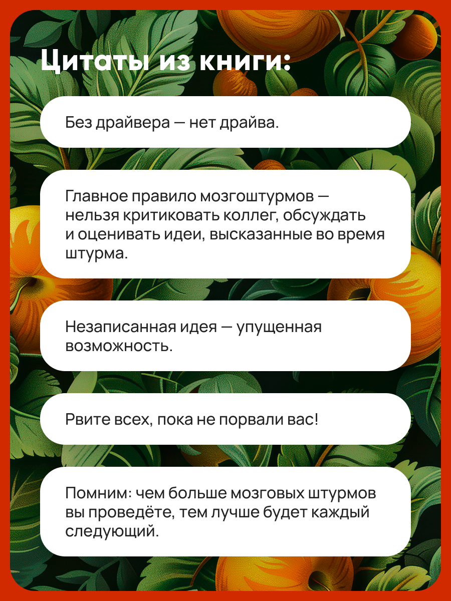 Вы перестанете «креативить» в одиночку. Книга даст вам структурированные методики для коллективной генерации идей для кампаний, запусков продуктов и решения нестандартных задач.