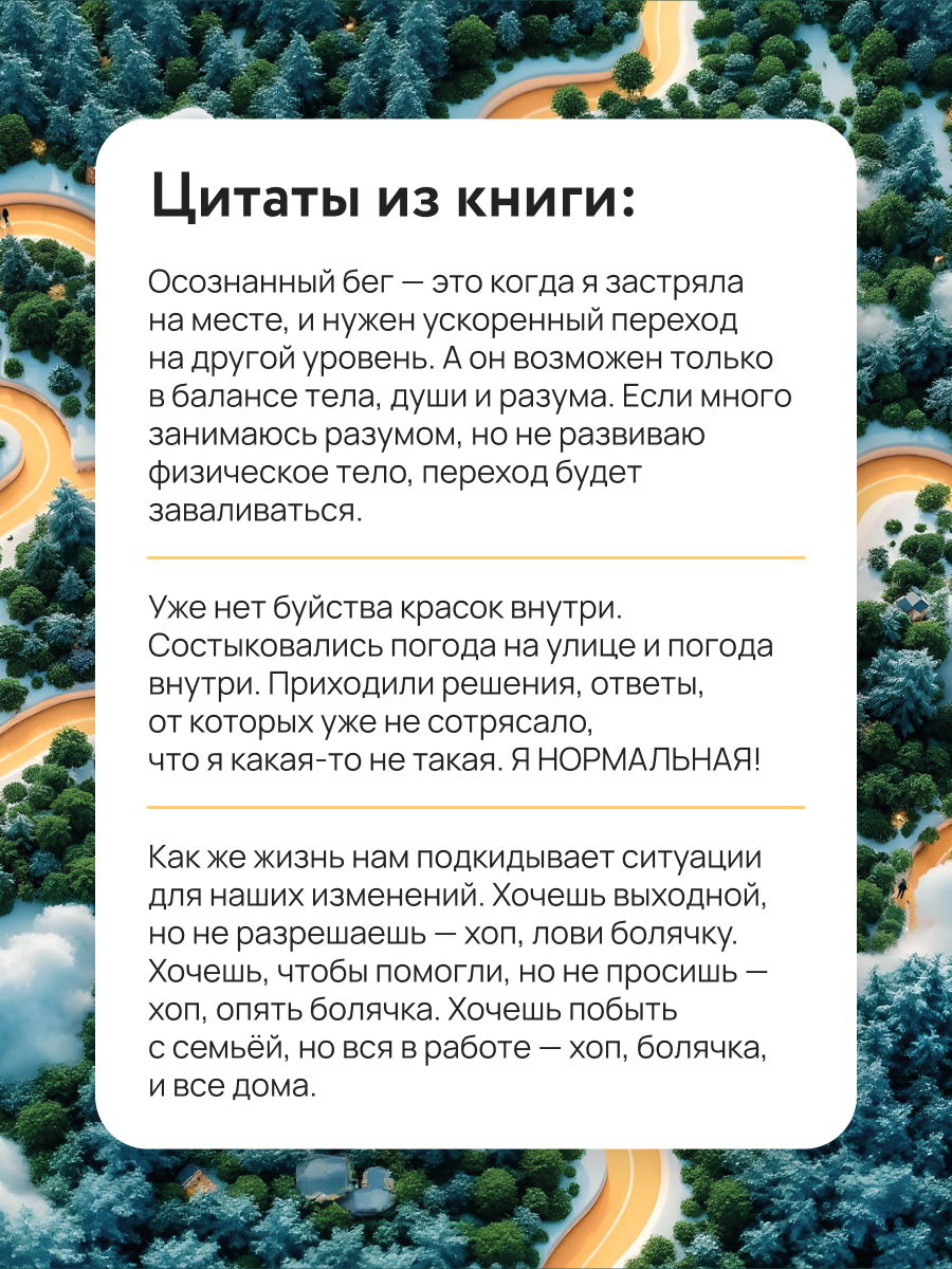 Вы увидите, что для изменений не нужны подвиги — достаточно ежедневно двигаться к своим целям, даже через сопротивление. Здесь нет правил или сверхзадач, только честный разговор о том, как обрести гармонию с собой и окружающим миром. Начните — и всё получится.