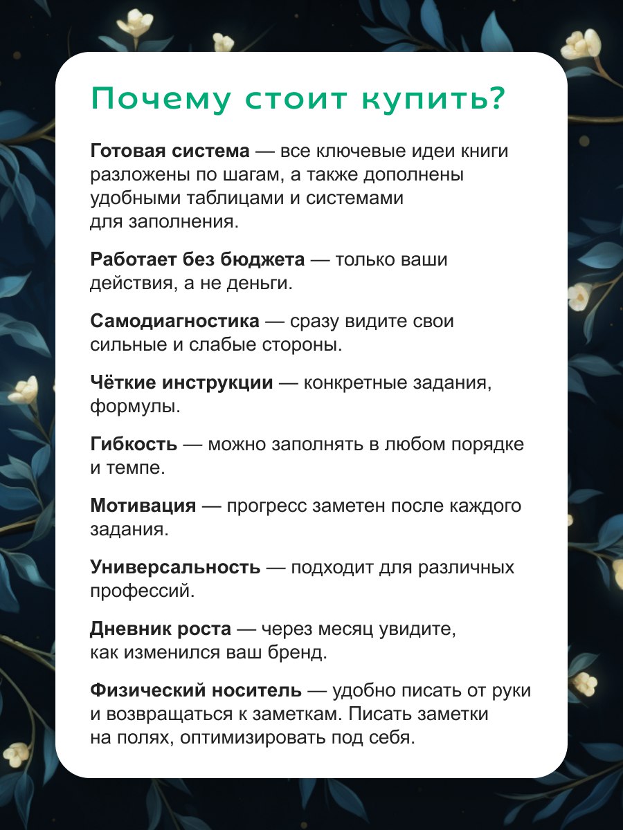 Узнать большеЭта рабочая тетрадь — ваш персональный наставник в построении личного бренда. Техники и механизмы основаны на книге Игоря Манна «Личный маркетинг без бюджета» Внутри ждёт пошаговая система из 4 ключевых блоков, где каждый этап — это конкретные задания, чек-листы и инструменты, которые помогут превратить знания из книги в реальные результаты.